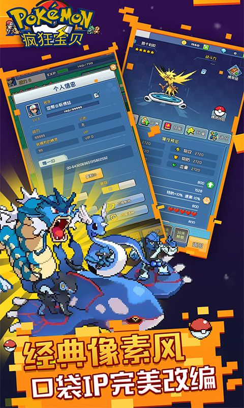 经典口袋IP改编,GBA战斗完美还原,《疯狂宝贝》是一款回合制精灵像素对战手游。游戏中完美还原了原著IP剧情,拥有数百款精灵宝可梦,灵活多变的战斗系统,草系、水系等精灵应有尽有,天气也能影响战斗哦。精灵进化、萌宠捕捉,装备升级,一整套养成路线等你来体验。实时PVP对战玩法,道馆挑战荣誉争夺,成为一名伟大的训练师,一起来冒险吧。