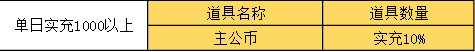 1.充值1000以上可获得代金券返利,比例10%+对应金额道具任选